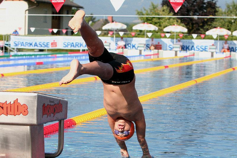 Von Donnerstag bis Sonntag vergangener Woche fanden in Wolfsberg die Österreichischen Meisterschaften der Jugend- und Schülerklassen im Schwimmen statt. Teilnahmeberechtigt waren die Burschen der Jahrgänge 1997/98 in der Altersklasse Jugend, die Jahrgänge 1999/2000 in der Altersklasse Schüler I sowie Schwimmer der Jahrgänge 2001/2002 in der Altersklasse Schüler II. Bei den Mädchen kämpften die  Jahrgänge 2001/2002 in der Altersklasse Schüler und die Jahrgänge 1999/2000 in der Altersklasse Jugend um die Österreichischen Meistertitel. Der Österreichische Schwimmverband (OSV) hat die Kriterien für eine Teilnahme an den Österr. Nachwuchsmeisterschaften heuer geändert: die Pflichtzeiten wurden strenger angesetzt und die Einzelstarts wurden auf maximal 5 pro Teilnehmer limitiert und bei Nichterreichen der Pflichtzeit muss der jeweilige Verein an den OSV Reuegeld bezahlen. Diese Maßnahmen haben dazu geführt, dass sich heuer die Teilnehmeranzahl gegenüber den Vorjahren merklich verringert hat. Die Reuegeldbestimmung stellen ebenfalls einen nicht zu unterschätzenden Kostenfaktor zu den bereits bestehendnr anfallenden Kosten bei einer Teilnahme an den ÖMS dar. 346 Athleten aus 54 österreichischen Vereinen haben ihre Nennung für die diesjährigen Nachwuchsmeisterschaften abgegeben. In Summe haben die Schwimmer und Schwimmerinnen 1950 Starts absolviert. Trainer Kosak vom WSV Sparkasse Wolfsberg hat 3 Aktive für diese Österreichischen Meisterschaften nominiert: Julia Grassler startet über 100 m Brust und 200m Brust.  Julia, Jahrgang 2002, kann sich in dem starken Teilnehmerfeld gegen ihre älteren Konkurrentinnen toll behaupten, verbessert ihre bisherige persönliche Bestzeit im Vorlauf um 5 Sekunden und sichert sich bei ihrer ersten Teilnahme an Österreichischen Meisterschaften gleich einen Platz im B-Finale. In diesem Finallauf kann sie sich abermals steigern und platziert sich mit einer neuen persönlichen Bestzeit auf dem ausgezeichneten 14. Endrang. Beflügelt von diesem guten Auftakt schwimmt sie auf der 200m Bruststrecke ein couragiertes Rennen, wiederum mit neuer persönlicher Bestzeit, und schafft auch hier den Einzug ins B-Finale. Im Finallauf kann sie sich nochmals steigern, unterbietet ihre bisherige Bestmarke um über 12 Sekunden und sichert sich den 12. Endrang in der Schülerklasse. Mit dieser tollen Leistung über die 200m Bruststrecke schiebt sie sich in der österreichischen Jahrgangswertung auf den ausgezeichneten 5. Rang vor. Theresa Hofer startete in der Jugendklasse in den Bewerben 400m Lagen, 100m Schmetterling, 100m Rücken und 200m Lagen. Über die 100m Schmetterlingsstrecke schwimmt auch sie eine neue persönliche Bestzeit und schafft ebenfalls den Einzug ins B- Finale und wird in der Endwertung 14. Marco Rupp, Jahrgang 1998, startet in den Bewerben 200m Rücken, 100m Rücken, 400m Freistil und 100m Freistil in der Jugendklasse. Marco ist zwar „jahrgangsbenachteiligt“, kann sich aber  in dem enorm starken Teilnehmerfeld gut behaupten und unterbietet in jedem Lauf seine bisherigen Bestmarken. Im 100m Rückenbewerb schafft er den Einzug ins B-Finale und platziert sich in der Endwertung auf dem 14. Rang. Im Vorlauf der 100m Freistilstrecke knackt er die „Schallmauer“ und schwimmt erstmals in seiner Laufbahn diese Strecke unter 1 Minute und schafft auch in diesem Bewerb den Einzug ins B-Finale. Im Finallauf kann er gut mithalten und sichert sich in der Endwertung wiederum den tollen 14. Rang. Insgesamt vom sportlichen Niveau her betrachtet waren diese Österreichischen Meisterschaften sehr erfolgreich: trotz der enormen Hitze wurden tolle Zeiten erzielt,  6 neue Österr. Rekorde wurden aufgestellt, u.a.  ein neuer Rekord über die 200m Bruststrecke in der weiblichen Schülerklasse  – der alte Rekord datierte aus dem Jahre 1990! Auch für den Schwimmverein Sparkasse Wolfsberg war diese Veranstaltung sehr erfolgreich, sowohl in sportlicher Hinsicht als auch in organisatorischer Hinsicht. Großes Lob für den WSV gab es vom verantwortlichen Schwimmwart des Österreichischen Schwimmverband für die Abhaltung und Durchführung dieser Nachwuchsmeisterschaften und auch das Schiedsrichterteam war mit den örtlichen Wettkampfrichtern sehr zufrieden. Das Team vom Wolfsberger Schwimmverein hat sich aber auch bemüht den Gästen aus ganz Österreich gelebte Kärntner Gastfreundschaft zu bieten. Die Teilnehmer  wurden nicht nur von Trainern und Vereinsfunktionären begleitet. Viele Familienangehörige reisten als Fans mit und somit waren viele Betten im Lavanttal von Mittwoch bis Sonntag mit „Schwimmern“ und „Mitgereisten“ belegt. Die Organisation für diese Veranstaltung hat beim WSV schon vor über einem Jahr begonnen. Vorgaben vom Österr. Schwimmverband mussten erfüllt werden, die technischen Voraussetzungen für die Zeitnehmung, Sprechanlage, Startanlage, Wettkampfgericht, Buffet, offizielle Eröffnung….. mussten organsiert, sichergestellt und finanziert werden. Pro Tag wurden mindestens 30 Mitarbeiter/ Helfer benötigt um einen reibungslosen Ablauf zu garantieren. All diese Helfer arbeiteten während dieser Veranstaltung pro Tag 12-14 Stunden ehrenamtlich und unentgeltlich für den Wolfsberger Schwimmverein (einige Helfer reisten sogar täglich für die Veranstaltung aus Graz und Villach an). Sehr zeitintensiv und kräfteraubend waren die Aufbauarbeiten und Vorbereitungsarbeiten,  die ausschließlich von den Helfern des WSV erledigt wurden: die Absperrungen um das Wettkampfbecken mussten aufgestellt werden, Transparente und Fahnen angebracht werden, die Zelte für das Buffet und die Schwimmer aufgestellt werden. Für die Zeitnehmer und Wendenrichter mussten die entsprechenden Voraussetzungen geschaffen werden. Ja und nach Beendigung der Veranstaltung war wieder alles abzubauen und wegzuräumen – ebenfalls ausschließlich vom Helferteam des Schwimmvereines. Ohne die Mithilfe der vielen helfenden Hände wäre dieses Unternehmen n
