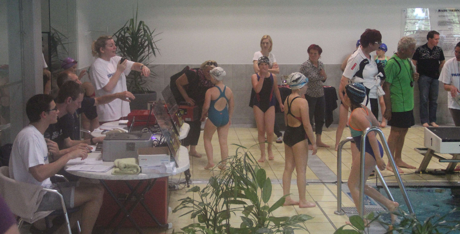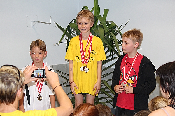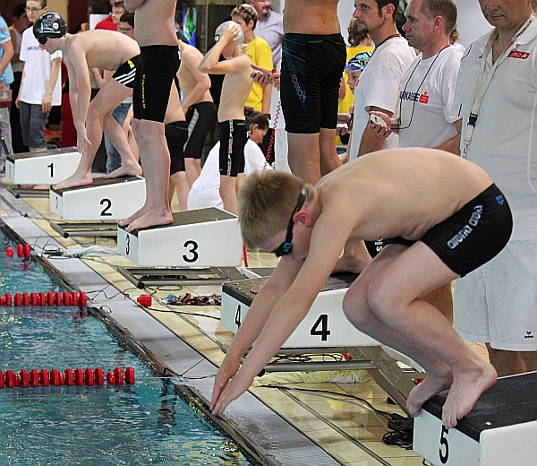 Der Auftakt zum Kärntner Nachwuchscup 2014 im Schwimmen erfolgte traditionellerweise im St. Veiter Hallenbad. Über 180 NachwuchsschwimmerInnen aus Kärnten und der Steiermark trafen sich am 10. Mai im Hallenbad der Herzogstadt um in die Sommersaison zu starten. Veranstaltet wurde der Wettkampf vom ansässigen Schwimmklub, die elektronische Zeitnehmung und Auswertung lag erstmals in den Händen der bei Schwimmveranstaltungen erfahrenen Firma „msecm“ aus Linz. Gleichzeitig mit der 1. Runde im Nachwuchscup fand auch die Vorausscheidung zu den Mehrkampfmeisterschaften (Mannschaft und Einzelbewerb) in der Kinderklasse statt. Für diesen Bewerb sind alle SchwimmerInnen der Altersklasse Jahrgang 2002 und jünger bis einschließlich 2005 startberechtigt. Die Aktiven müssen an allen 5 Einzelwettkämpfen (alle 50m Bewerbe sowie der 400m Freistilbewerb) an den Start gehen. Die Wertung erfolgt nach der gültigen Punktetabelle der FINA (Dachverband aller nationalen Sportverbände im Schwimmen). Die erreichten Punkte werden addiert, für das Finale qualifizieren sich österreichweit die 10 punktebesten SchwimmerInnen. Der KärntnerNachwuchscup wird in vier Runden ausgetragen, startberechtigt sind Schwimmer der Jahrgänge 1998 und jünger.  Der Auftakt erfolgte in St. Veit, die nächsten Stationen sind Radenthein (15.Juni) und Paternion (28.Juni) und Wolfsberg, wo am 19. Juli das Finale stattfinden wird. Die erschwommenen Zeiten der einzelnen Bewerbe werden addiert und der Aktive, der die geringste Zeit aus allen vier Bewerbsrunden aufweist, ist Gesamtsieger im Kärntner Nachwuchscup. Gewertet wird in folgenden Altersklassen: Junioren Weiblich (Jahrgang 1998/99), Jugend Männlich (Jahrgang 1998/99), Jugend Weiblich (Jg 2000/2001), Schüler I Männlich (Jg 2000/2001), Schüler Weiblich (Jg 2002/2003), Schüler II Männlich (Jg 2002/2003) und Kinderklasse (Jg 2004/2005/2006 und jünger). Der WSV Sparkasse Wolfsberg nahm mit 20 Aktiven an dieser ersten Cuprunde teil. „Schwimmen als Sportart ist wieder „in“ bei den Kids“, stellt WSV Obmann Hofer zufrieden fest. Für viele unserer Nachwuchsschwimmer war dies der allererste Wettkampf. Dementsprechend groß war die Aufregung und Nervosität bei den Aktiven, aber auch bei den vielen mitgereisten Fans. Spürbar war diese Anspannung schon vor der Abfahrt beim Treffpunkt Stadionbad, schlussendlich waren alle offenen Fragen geklärt, die Schwimmer „eroberten“ ihre Sitzplätze in den Bussen und in den Autos der „Bring- und Holdienste“ – großen Dank an die Mamas, Papas, Omas und Opas, die sich immer bereitwillig als Chauffeure zur Verfügung stellen.  Am Wettkampfort angekommen nahmen die arrivierten SchwimmerInnen ihre jungen, im Wettkampf noch unerfahrenen VereinskollegInnen unter die Fittiche, zeigten ihnen die Örtlichkeiten und erläuterten den Ablauf des Wettkampftages. Helfende Hände von Mamas und Papas, sowie Hemma und Urska sorgten dafür, dass alle rechtzeitig und in entsprechender Ausrüstung zum Einschwimmen parat am Beckenrand standen. Schnell konnten noch ein paar Startsprünge vom Startsockel geübt werden – für einige von unseren Schwimmern eine Novität, da es ja in unserem Trainingsbad beim „Stoff“ keine Startsockel gibt. Ja und dann ging der Wettkampf auch schon los! Durch die vielen Teilnehmer an diesem Schwimmbewerb war der Lärmpegel in der Schwimmhalle entsprechend groß und die Ansagen vom Sprecher waren nur schwer oder gar nicht zu hören. So passierte es auch, dass der Wettkampf von Schiedsrichter Nemeth gestartet wurde, viele Teilnehmer aber noch beim Umziehen waren. Durch diesen Umstand verpassten einige junge NachwuchsschwimmerInnen ihren Start im ersten Bewerb (50m Rücken) –  fairerweise erhielten diese SchwimmerInnen aber die Möglichkeit ihren Lauf nachzuholen. Starterin Giefing versuchte von Beginn an den Startvorgang entsprechend den Internationalen Regeln durchzuführen (für Interessierte ist dieser Ablauf im Newsletter auf der WSV Homepage nachzulesen). Der Herzschlag bei unseren jüngsten Aktiven erhöhte sich kurzzeitig und endlich ertönte das Startsignal und los ging`s ins Wasser. Alle WSV´ler versuchten einen Startsprung vom Sockel bzw beim Rückenbewerb aus dem Wasser. Wenn man bedenkt, dass viele unserer Teilnehmer erst im Herbst oder Winter mit dem Schwimmen als Wettkampfsport begonnen haben, eine tolle Leistung! Das Programm war straff gestaltet und unsere Helfer kamen – nicht nur aufgrund der tropischen Temperaturen im Bad – ganz schön ins Schwitzen. Aber alle unsere SchwimmerInnen waren immer rechtzeitig am Start und am richtigen Startsockel – großes Danke an Hemma, Urska und Helene, die sich um die jüngsten WSV`ler gekümmert haben. Den Schwimmern wurde keine Pause gegönnt, Lauf um Lauf wurde heruntergespult und schon stand der nächste Start am Programm. Der eine oder andere Schwimmer hatte dabei noch mehr mit sich und dem Wasser zu kämpfen als mit seinen Konkurrenten auf den Nebenbahnen. Doch wie in jeder Sportart gilt es auch im Schwimmsport:“ Übung macht den Meister“ und „Ohne Fleiß kein Preis!“. Bestens unterstützt von den vielen mitgereisten Fans zeigten unsere Youngsters was in ihnen steckt. Unsere absoluten Wettkampfneulinge Samira, Nicolas, Jasmin, Ella, Lena und Sebastian haben ihr Wettkampfdebüt erfolgreich absolviert. Jetzt heißt es fleißig weitertrainieren um den erfolgreichen VereinskollegInnen nachzueifern. Die Gruppe derer, die bereits an einem oder mehreren Wettkämpfen teilgenommen haben, ist erfreulicherweise stark angewachsen. Maxima, Arwen, Tiffany, Anika, Jonas Paul, Jaqueline, Diana, Miriam und Fabian haben großartige Leistungen gezeigt und enorme Fortschritte gemacht. Diejenigen, die die Trainingseinheiten fleißig besuchen und auch konsequent trainieren, entwickeln sich um ein Vielfaches weiter als diejenigen, die nur sporadisch bei den Trainingseinheiten mitmachen. Erstmals nach langer Zeit konnte unser Verein im Nachwuchsbere